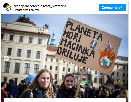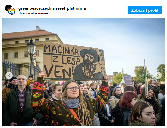 Na náměstí se objevil obrovský transparent s nápisem „Zachraňme ministerstvo životního prostředí“. Mnozí demonstranti přinesli i vlastní transparenty s nápisy jako „Planeta hoří, Macinka griluje“ nebo „Choose eco, not ego“. Protestující vyzvali předsedu hnutí ANO Andreje Babiše, aby nenavrhoval do čela resortu nikoho, kdo by mohl přírodu ohrozit. Zároveň apelovali na prezidenta Petra Pavla, aby odmítl jmenování kandidáta Motoristů. Jedna z organizátorek uvedla: „Nesouhlasíme s tím, aby ministerstvo životního prostředí vedl člověk, který k tomu nemá žádnou kompetenci ani vzdělání.“