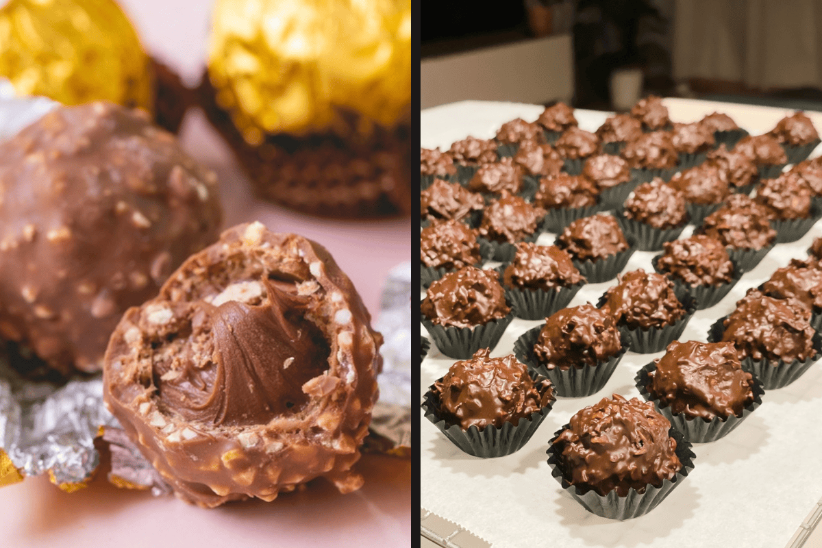 Tuhle domácí verzi oblíbených pralinek si zamilujete hned po prvním soustu. Je hotová během chvilky, nepotřebujete žádné složité vybavení a vystačíte si jen s několika základními ingrediencemi. Chuťově připomíná slavné Ferrero Rocher, ale navíc máte jistotu, že přesně víte, co jíte. Ideální vánoční sladkost na poslední chvíli nebo jako jedlý dárek.