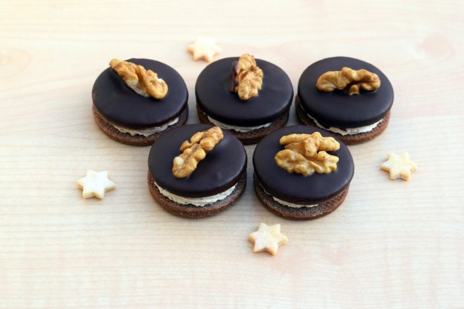 Sváteční cukroví jednoduše musí vypadat krásně a chutnat úžasně. Jakmile nesplní obě podmínky, nemá šanci se dostat na seznam vašich oblíbenců. Vyzkoušejte dnešní sušenkové cukroví s ořechovým krémem, čokoládovou polevou a ořechem na ozdobu, které dokonale splní estetický i chuťový požitek. A jistě je budete dělat každý rok znovu a znovu.