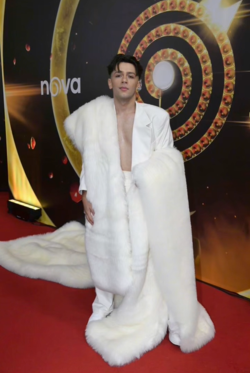 Jan Bendig dorazil na galavečer v kombinaci, kterou jen tak někdo nenosí. Jeho bílý oblek bez košile působil na první pohled provokativně, ale opravdovou show zajistila až velebná vlečka z měkkého plyšového materiálu. Táhla se za ním jako dramatický filmový efekt a okamžitě zastavila dění kolem. Přítomní fotografové se předháněli, kdo zachytí tento moment lépe, protože Bendigův vstup byl jednoznačně jedním z vrcholů večera. Nepřehlédnutelný nebyl omylem – přesně to bylo jeho cílem.