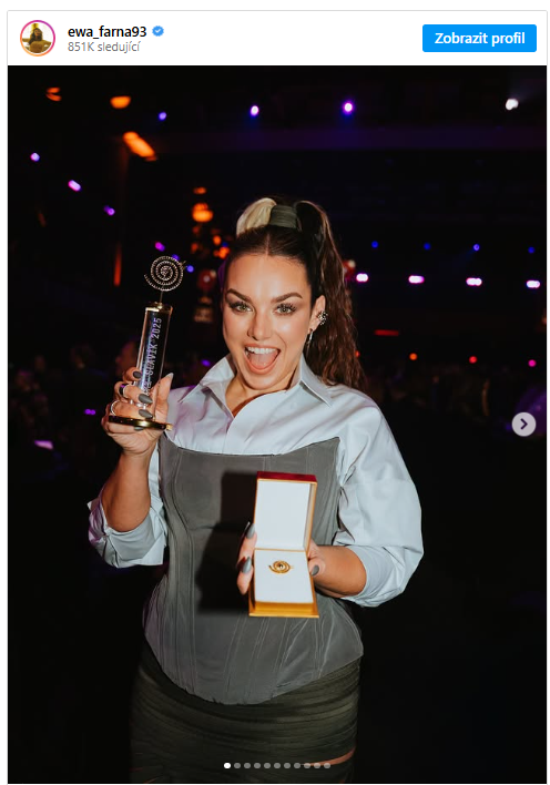 Ewa Farna završila celý večer jako absolutní vítězka, když získala nejvyšší počet všech hlasů – 71 910. Její triumf byl nejen očekávaný, ale i zasloužený. Svou dominanci potvrdila ve více kategoriích a ukázala, že má v českém showbyznysu stabilní a pevnou pozici.