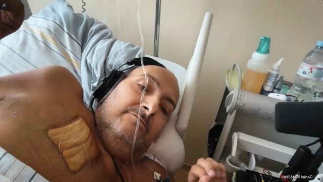 Patrik je během natáčení neobvykle rozverný a žertuje dokonce i o léčbě. Fanouškům vysvětluje, proč se rozhodl natáčet přes video: chce jim ukázat posun svého zdravotního stavu. V dobré náladě říká: „Dneska piju kluci s váma, tady si dávám ilustrativně kapačku, ať to vidíte. Mám v ní speciální vodku a tady v kapačce vedle je něco ještě tvrdšího. Musím říct, že jsem pod vlivem látek, které mě dostávají do velmi libidózního stavu.“ Ačkoliv jde samozřejmě o vtip, jeho elán zjevně zůstává silnější než nemocniční stereotyp.