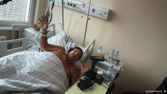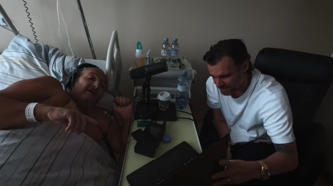 Hned v úvodu videa se pánové vítají s viditelným dojetím a nešetří humorem. Patrik přiznává, že „pod sto ještě nemám“, i když se k hranici vytrvale blíží. Miloš ho ale povzbuzuje tvrzením, že má ramena jako Steven Seagal a chybí mu prý jen nátělník a tlustý zlatý řetěz. Patrik s úsměvem ukazuje lože, gramofon, lednici i fakt, že se konečně objevil na titulce bulváru, což bere jako velký osobní milník. Jeho energie působí, jako by nemocniční prostředí místo úzkosti přinášelo zvláštní druh kreativního adrenalinu.