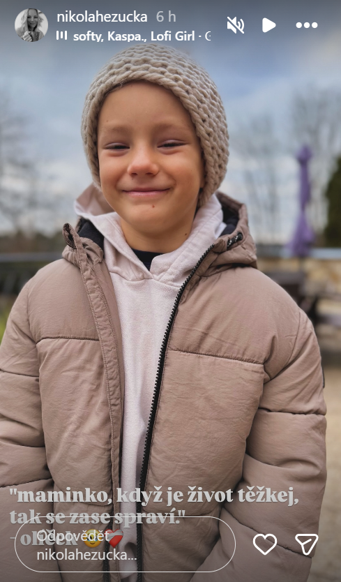 V době, kdy Nikola sdílela na Instagramu dojemný snímek Olivera, se mnohým stáhl žaludek. Malý chlapec stojí venku v teplé bundě a pletené čepici, tvář mu zdobí statečný úsměv a v rukou drží kus rodinné odvahy. K fotce Nikola připsala přesná slova svého syna, která dojala celé Česko: Maminko, když je život těžký, tak se zase spraví,“ citovala Oliverův vzkaz.