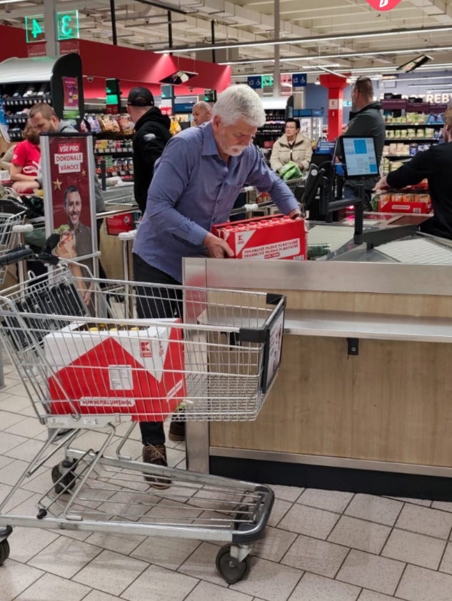 Na síti X (dříve Twitter) se objevila fotografie prezidenta s několika potravinami. Uživatel pod přezdívkou „Zoufalá Fiala“ k ní připsal ironický komentář: „Měsíční příjem ze státní kasy je astronomický, ale ty koupíš 12 litrů mléka a 12 litrů oleje. Pávku Pávku.“ Příspěvek se rychle šířil, ale opíral se pouze o jeden snímek bez kontextu. Nikdo přitom neví, zda šlo o celý prezidentův nákup, nebo jen část, kterou právě dával do košíku.