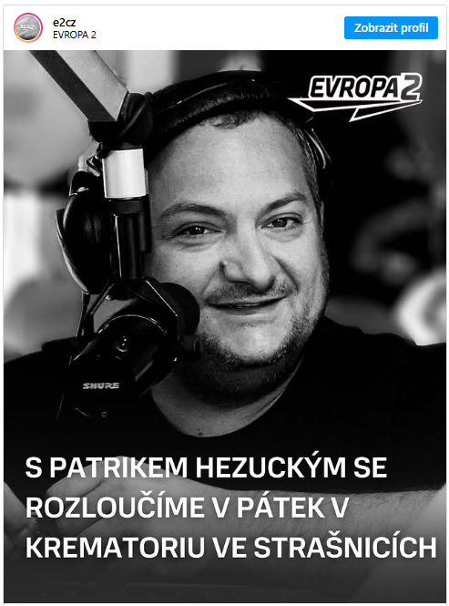Patrik Hezucký odešel 5. prosince a zpráva o jeho smrti zasáhla celé Česko. Teď se už připravuje samotné rozloučení, které proběhne v pátek 12. 12. od 14:30 ve strašnickém krematoriu v Praze. Tuto informaci zveřejnil jeho dlouholetý kolega Pavel Cejnar, který o detaily pohřbu požádal rodinu a následně je sdílel ve vysílání. Datum okamžitě vyvolalo mezi posluchači řadu reakcí a lidé začali přemýšlet, jakým způsobem se budou moci zúčastnit.