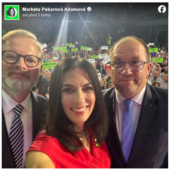 Předsedkyně TOP 09 Markéta Pekarová Adamová, která v letošních volbách nekandidovala, veřejně poděkovala Fialovi za vedení. „Vždycky jsem na tebe, Petře, byla hrdá,“ řekla premiérovi dojatě. Předseda lidovců Marek Výborný jí předal kytici a poděkoval za to, že byla po celé čtyři roky výraznou tváří koalice Spolu.