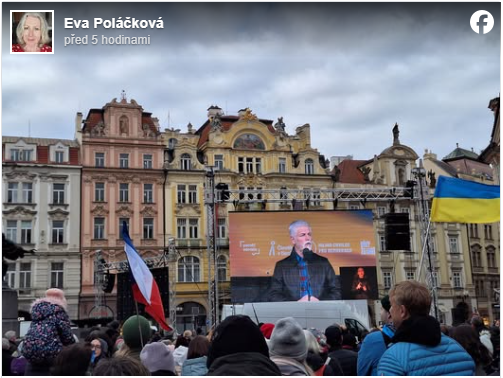 Mezi řečníky vystoupil také prezident Petr Pavel. Před zaplněným náměstím připomněl, že válka si vybírá krutou daň. „Ve válce umírají lidé na obou stranách, ale musíme si říct, kdo válku začal a proč,“ upozornil přítomné. Jeho slova doprovodil potlesk i souhlasné reakce davu, který mu naslouchal v naprostém tichu.